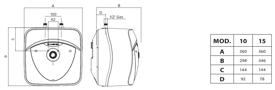 Водонагреватель электрический накопительный Ariston ABS ANDRIS LUX 10 UR над раковиной 10 литров эмалированный механическое управление разработан для установки внутри зданий, в бытовых и хозяйственных помещениях и предназначен для нагрева воды ниже точки кипения, с возможностью снабжения непитьевой санитарной горячей водой системы ГВС в нескольких точках водоразбора: ванна, кухня, туалет. В дальнейшем водонагреватель способен поддерживать заданную температуру воды в автоматическом режиме. Конструктивно накопительный водонагреватель Ariston ABS ANDRIS LUX UR состоит из внутреннего бака, теплоизоляции, нагревательного элемента ТЭН, регулятора температуры, термостата и магниевого анода. В комплекте также поставляет предохранительный клапан, который устанавливается на входе холодной воды в водонагреватель и выполняет функции предотвращения возврата воды из водонагревателя при отсутствии воды в магистрали холодного водоснабжения и защиты внутреннего бака от избыточного давления.